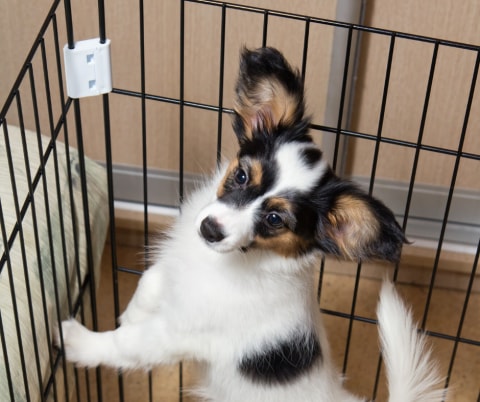 While your puppy is still learning, limit their access to your home by placing them in a crate or enclosed playpen if you can't keep an eye on them. Allowing a puppy to have free reign of your house while you are not able to keep a close eye on them is not advisable. Not only can they destroy or ingest something, but if you are not watching for signs that they need to go to the toilet and proactively take them out, they may also learn that it's acceptable to toilet in the house.